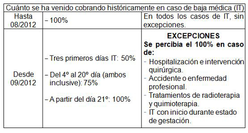 - Hasta septiembre de 2012, cuando estábamos de baja por enfermedad (ya fuera por contingencias comunes o profesionales) percibíamos el 100% de las retribuciones.
