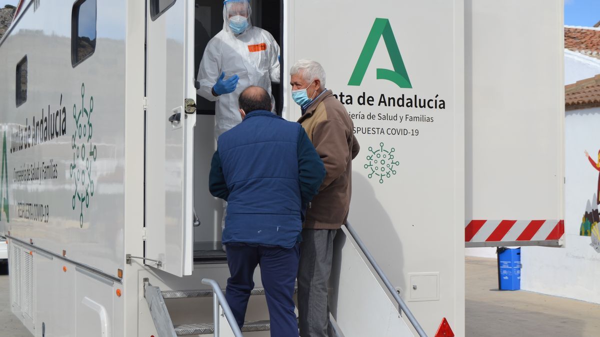"Es una cosa muy rara: resulta que en el pueblo todo el mundo tiene COVID… Y nadie tiene síntomas", comenta Josefa Rosado en la cola, justo antes de entrar al camión de la Junta donde le realizarán el test PCR. Ella no ha observado un comportamiento especialmente irresponsable. "Estamos anonadados, qué quieres que te diga. Está todo cerrado, en el Centro de Salud están muy agobiados y hay pánico en el pueblo. Es incomprensible".