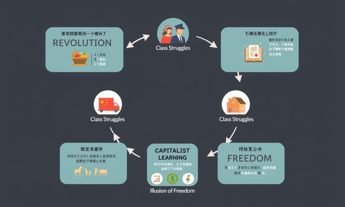 歴史を振り返ると、何度も革命が起こって支配層が入れ替わったらしい。でも、不思議と階級の対立そのものは消えなかったとか。資本家たちは昔の失敗から学んでいるようで、あからさまな弾圧だと反発されやすいこと、もう知っているみたい。それなら今はどうやってコントロールしてる?自由だと信じ込ませる手法——これが一番効いている気がする。